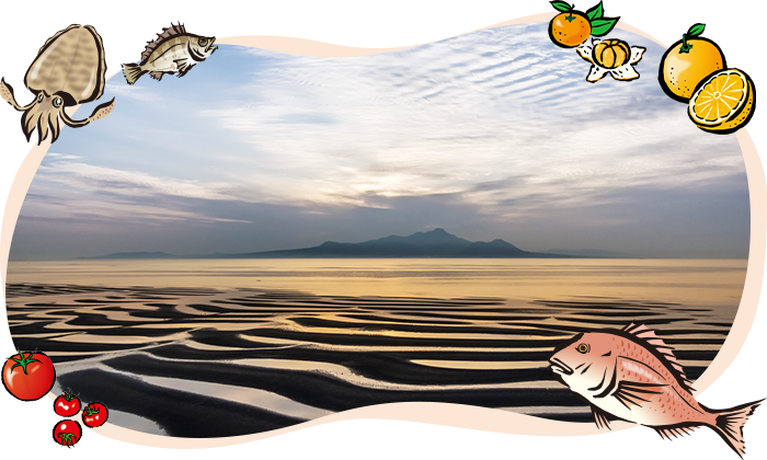 日本渚百選に選ばれた「御輿来(おこしき)海岸」から島原半島の雲仙普賢岳を眺望できる絶好の休憩スポットです。
