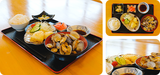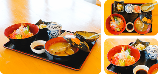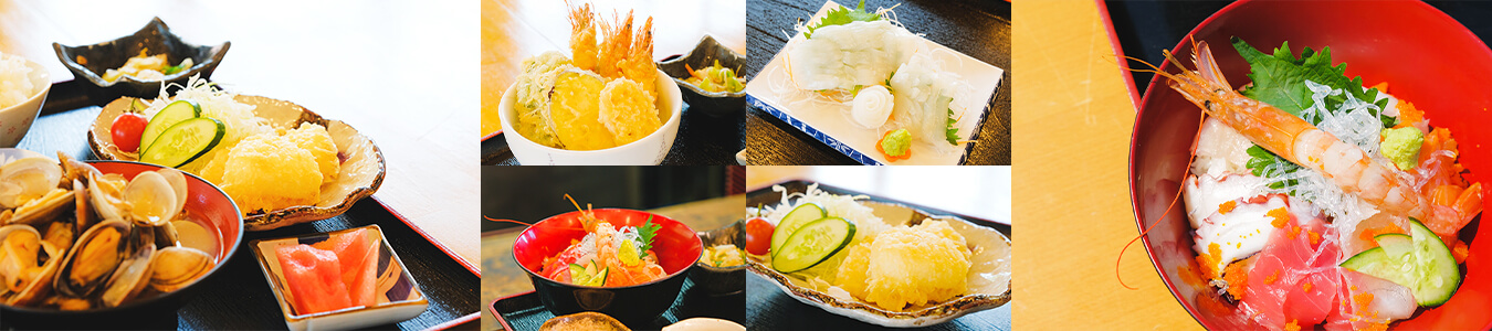 おこしき⾷堂では、活⿂、鮮⿂を⽬の前で調理してご提供しておりますので、楽しく美味しく新鮮な海の幸をご堪能いただけます!